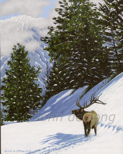 "Fresh Snow - Bull Elk"
