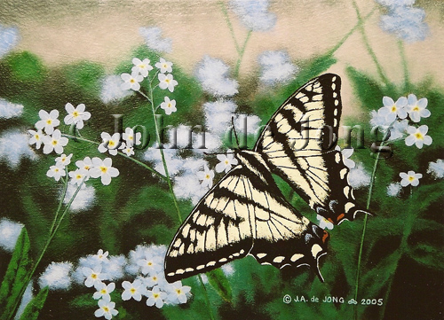 "Forget-Me-Nots and Swallowtail" - SOLD